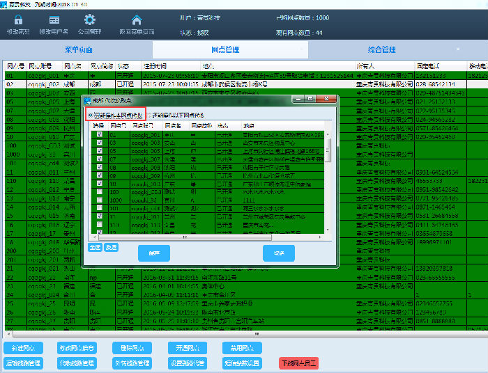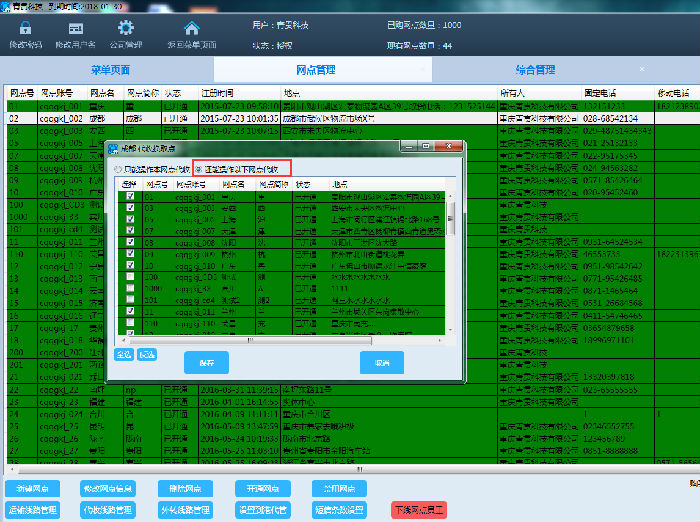 2、选择要进行代收线路管理的网点,如下图: