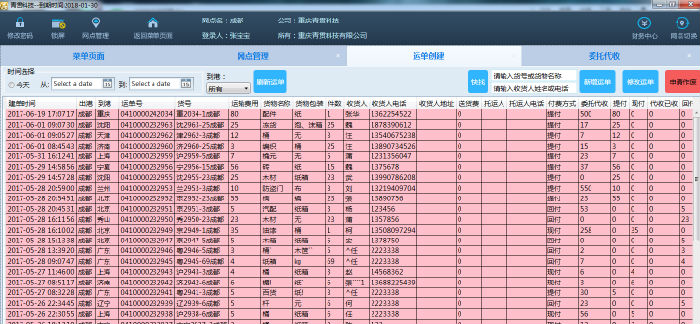 完成设置以后,重新登录运单创建或综合管理,即可看到刚刚设置的选项,如下图